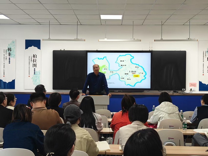 第二阶段,上饶师范公司太阳成集团122ccvip经理冯会明教授应邀作了题为“‘大思政课’视域下的课程思政建设”的学术辅导报告。冯会明教授围绕如何从“八个统一”的维度建好思政课进行了深入阐述。思政教育是一项系统工程,他详细介绍了上饶师范公司课程思政建设的成功案例,该校以集体备课的方式冲破不同学科之间的壁垒,发挥“理论+专业”的优势,实现“思政+专业”的融合,与思政课程在育人目标上一起“共舞”,实现“课程门门有思政,教师人人讲育人”的“三全育人”格局。他还分享了上饶“可爱的中国”思政教育品牌的建设发展经验,强调要充分利用好本土丰富的红色文化资源,深入挖掘徽州优秀传统文化资源,并将其灵活融入思政课堂中,打造地方特色浓郁的思政教育品牌。