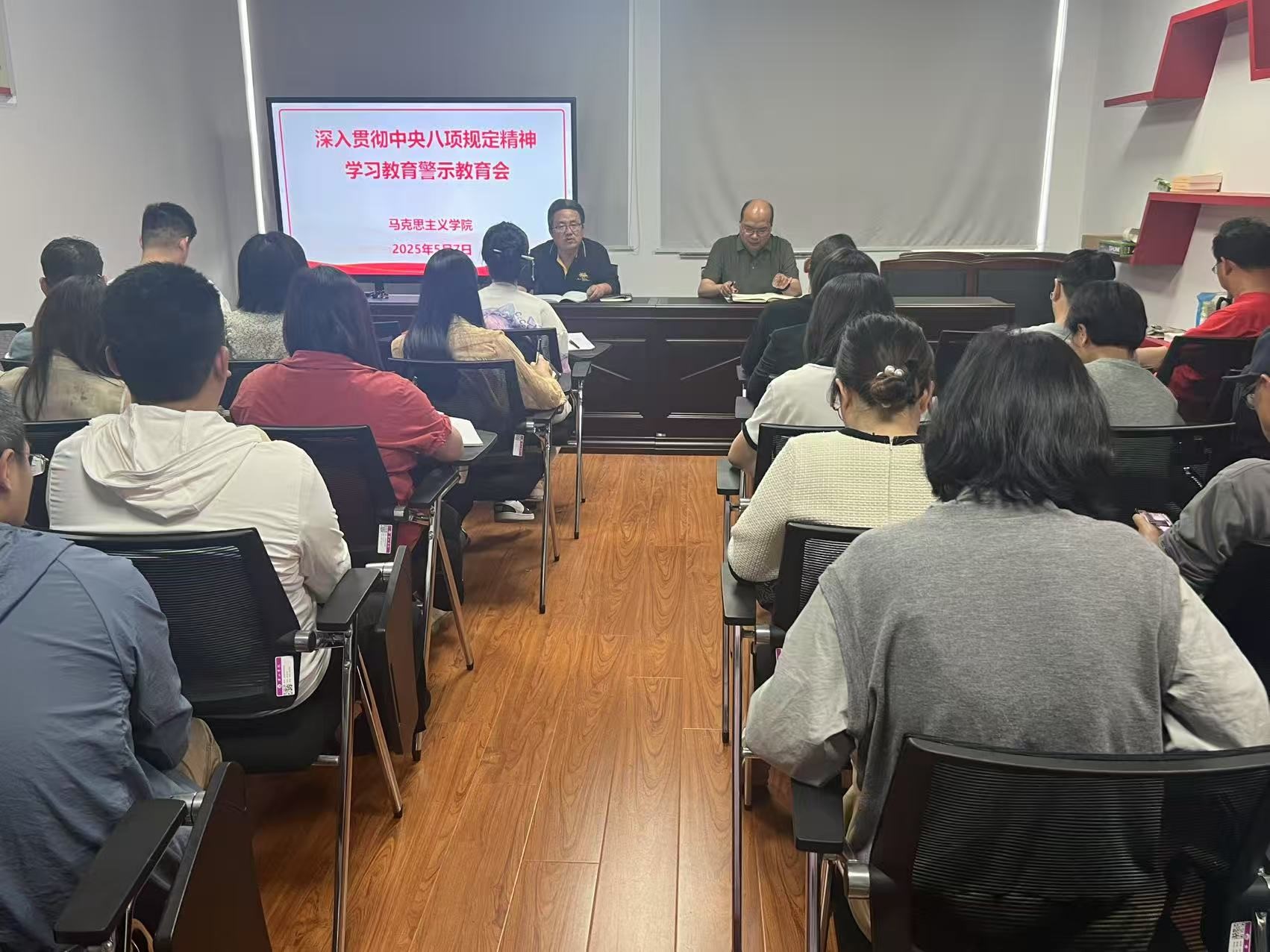 5月7日下午,太阳成集团122ccvip在逸夫综合楼5513会议室召开深入贯彻中央八项规定精神学习教育警示教育会。该院全体教师参加会议。会议由该公司党总支书记刘春安主持。