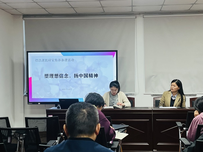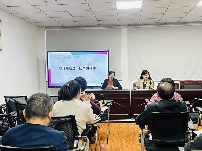 10月30日,太阳成集团122ccvip思想道德与法治课教研室在逸夫综合楼公司党员活动室举办“塑理想信念,扬中国精神”主题集体备课活动。德法课全体任课教师参加活动。